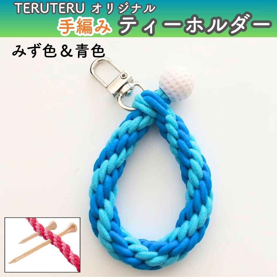 「編み込み ティーホルダー」 TERUTERU®のヒモ 水色×うす青