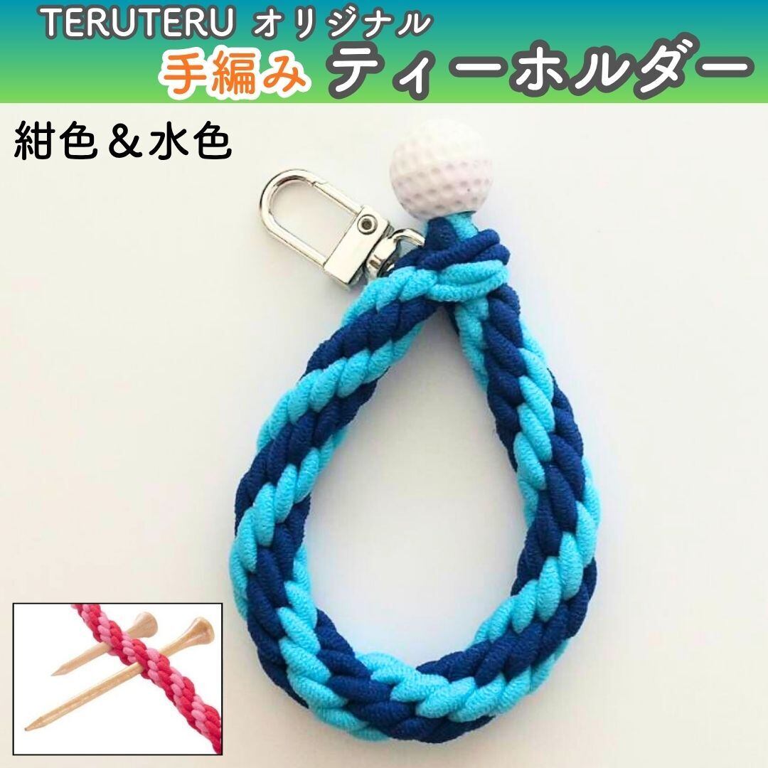 「編み込み ティーホルダー」TERUTERU®のヒモ 紺色✕水色